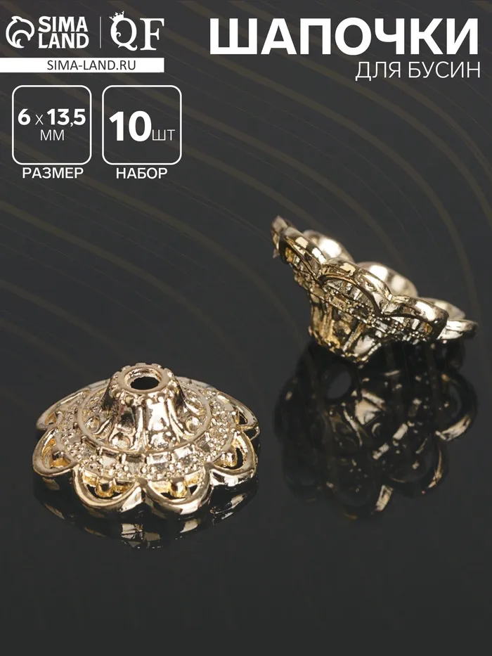 Шапочки для бусин (набор 10 шт.), 6×13.5 мм, цвет золото — Характеристики