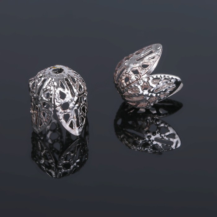 Шапочки выполнены в серебристом цвете, что придаёт изделиям универсальность и позволяет сочетать их с различными декоративными элементами и фурнитурой. Размеры 11 х 12 мм подходят для большинства стандартных бусин, обеспечивая их надёжное удержание и красивое оформление.
