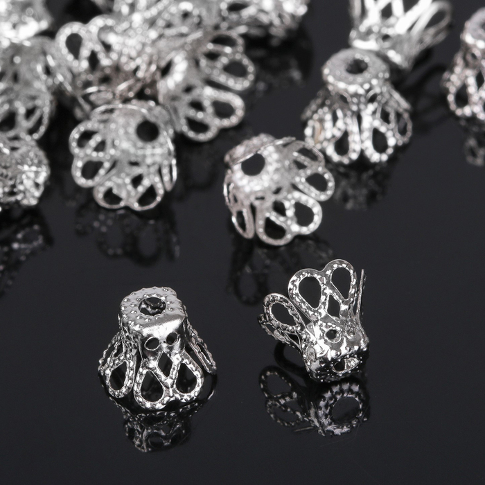 Шапочки для бусин (набор 50 шт.), СМ-091, 8×10 мм, цвет серебро — Характеристики