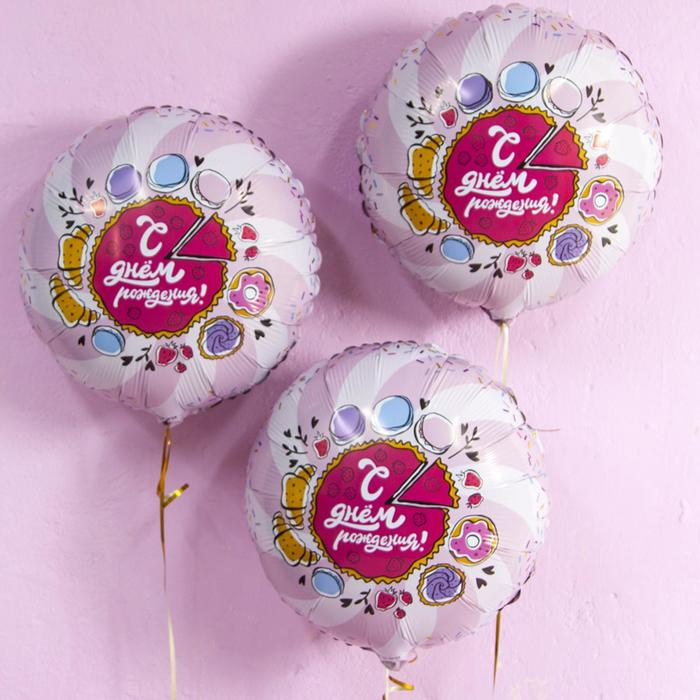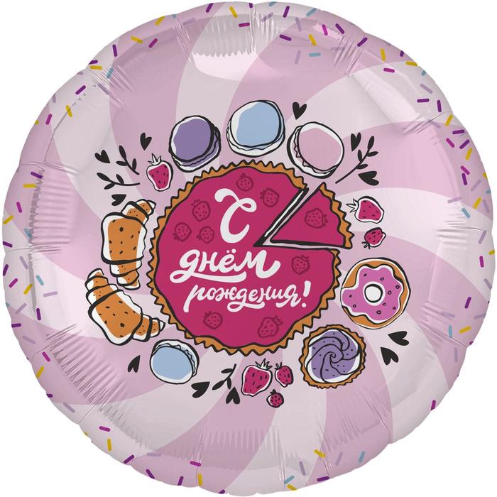 Шар фольгированный 18" «С днём рождения! Тортик», круг — Характеристики