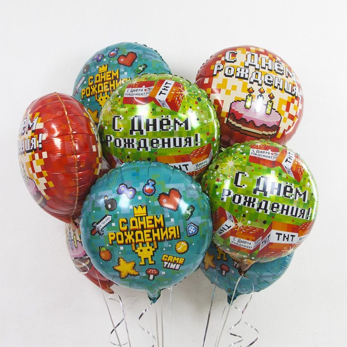 Шар фольгированный 18" «С ДР! Пиксели, торт», круг, 1 шт. в упаковке, цвет красный — Характеристики