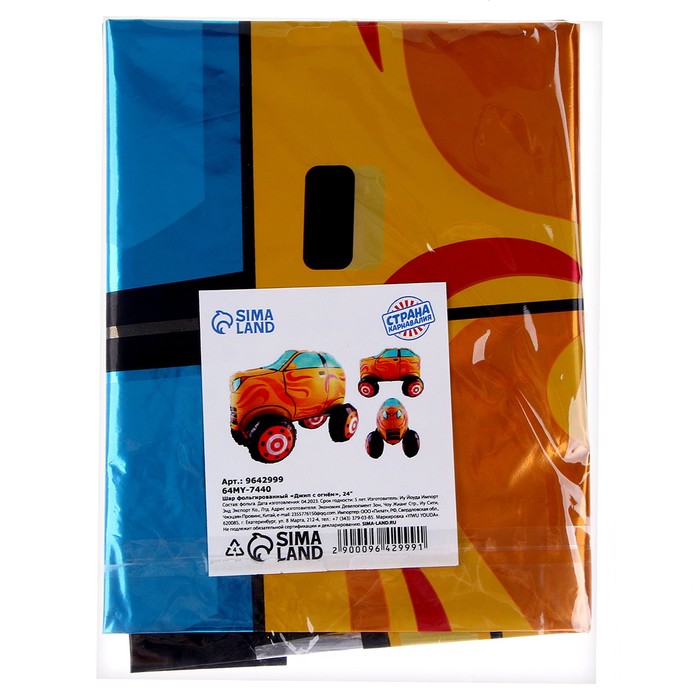 Шар фольгированный 24" «Джип с огнём», под воздух — Характеристики
