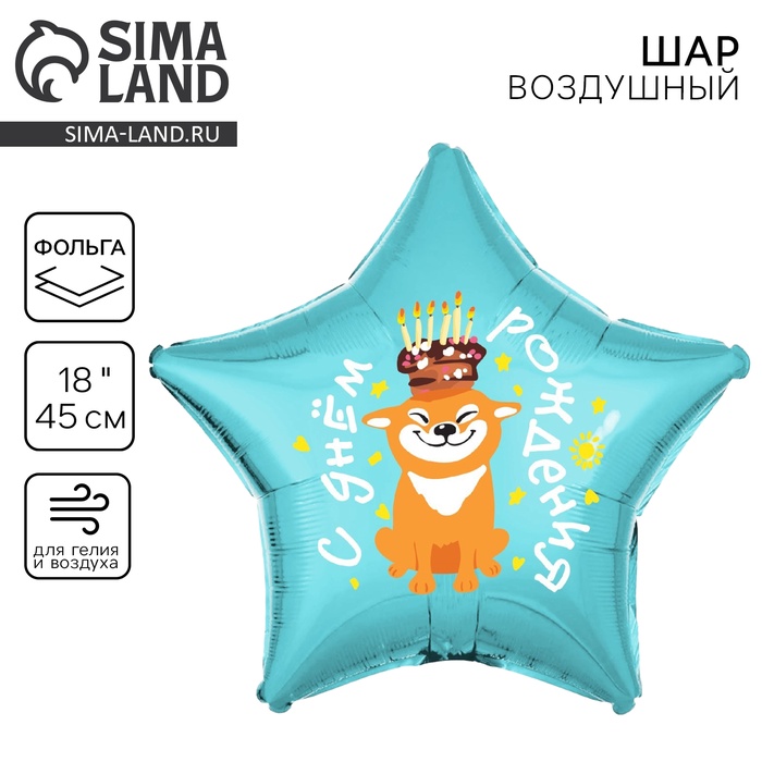 Воздушный шар фольгированный 18" «С днём рождения, собака», звезда
