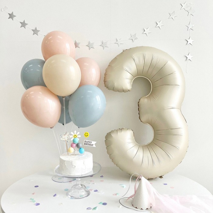 Шар фольгированный 40" Цифра 3, цвет «Взбитые сливки» — Характеристики