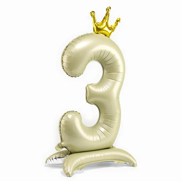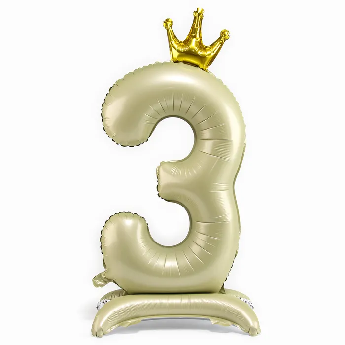 Шар фольгированный 42" «Цифра 3 с короной» на подставке, цвет взбитые сливки — Характеристики