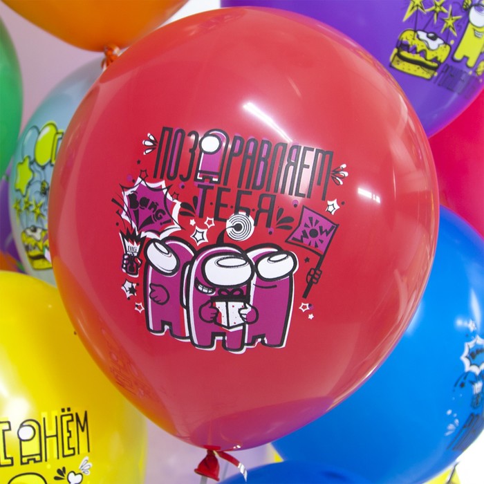 Шар латексный 12" «Игра среди нас. С ДР», пастель, 1-сторонний, набор 25 шт., МИКС — Характеристики
