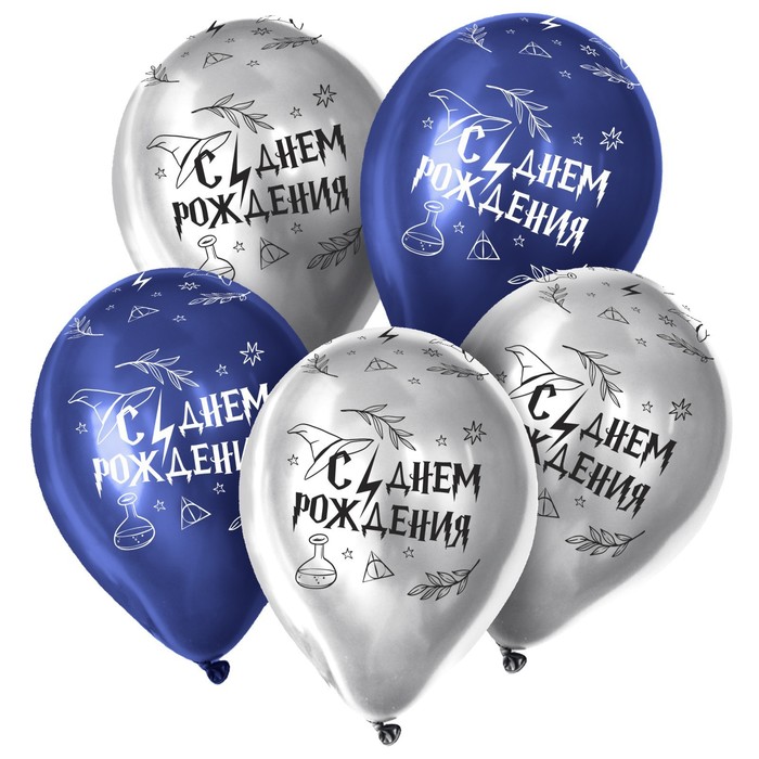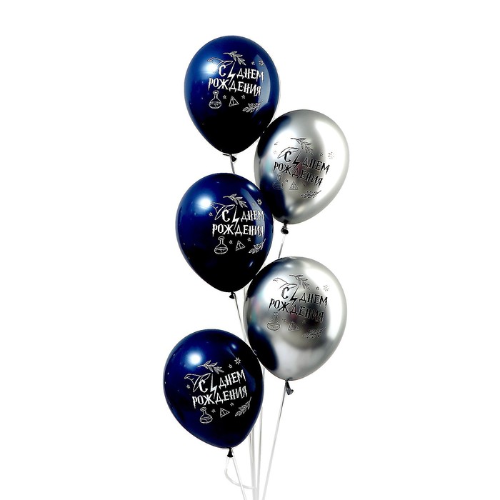 Шар латексный 12" «С Днём рождения. Магия», пастель, набор 50 шт.,цвет серебро ХРОМ,т.синий — Характеристики