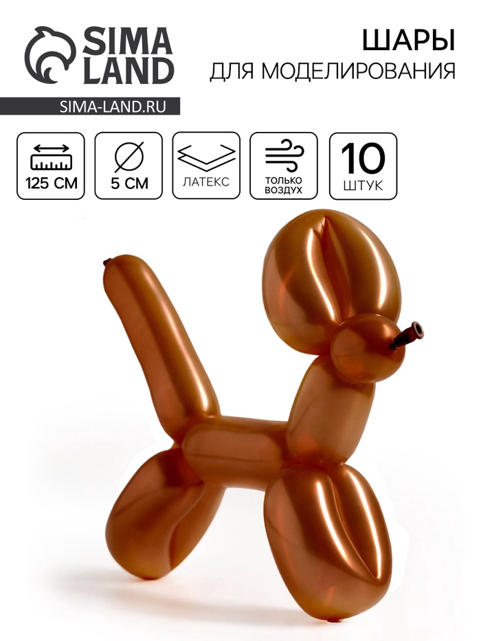 Воздушные шары для моделирования 125 см, d=5 см, 10 шт., макарунс, коричневые