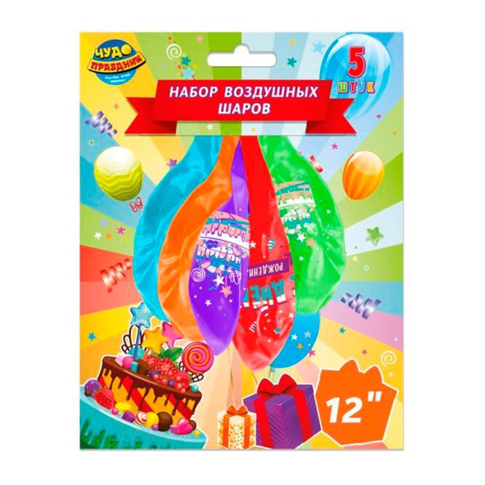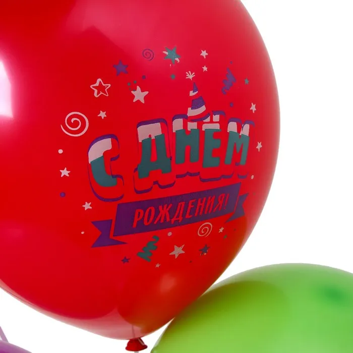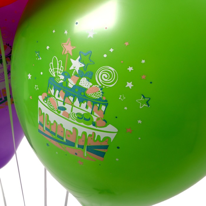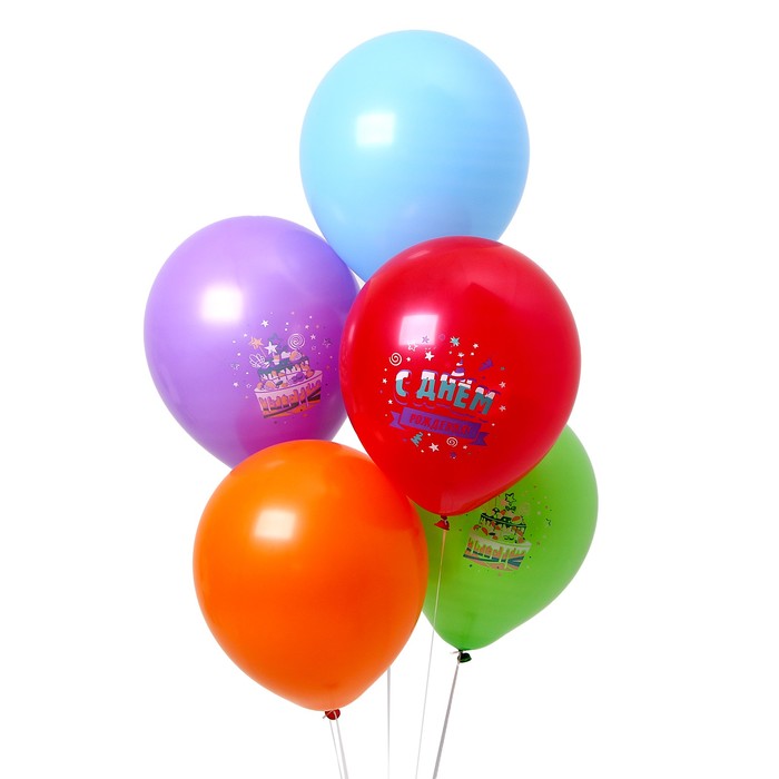 Шар латексный 12" «С Днём Рождения» цветной принт, набор 5 шт. — Характеристики
