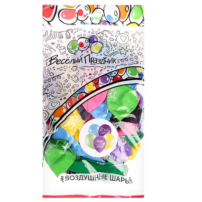 Шар латексный 12" «С днём рождения! Вечеринка», пастель, 2-сторонний, набор 50 шт., МИКС — Характеристики