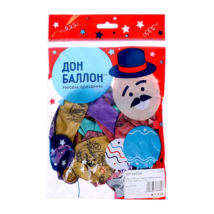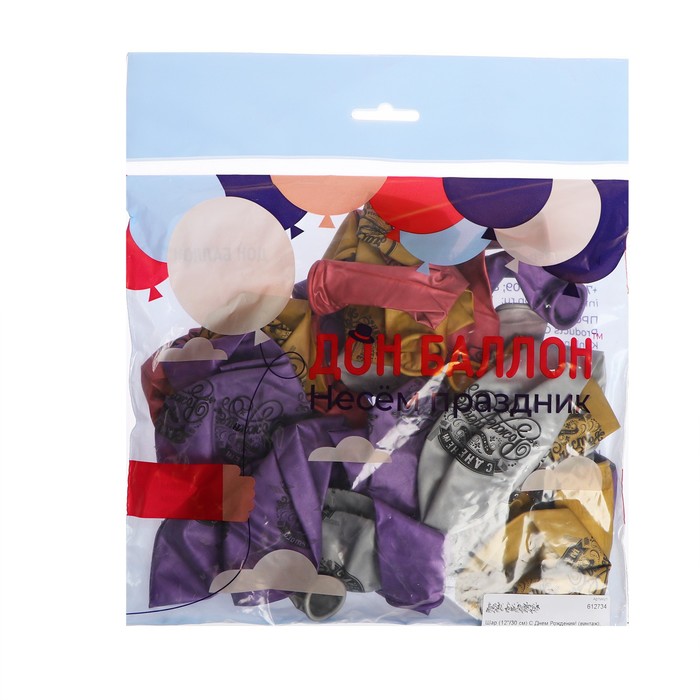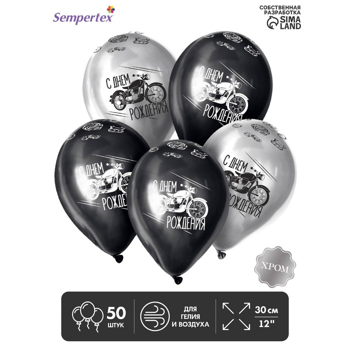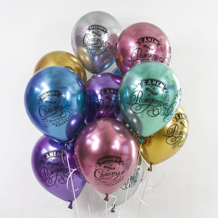 Шар латексный 12" «С днём рождения! Винтаж», хром, 4-сторонний, набор 25 шт., МИКС — Характеристики
