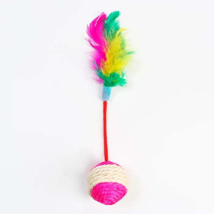 Шар-погремушка сизалевый с перьями, 4.5 см, розовый — Характеристики
