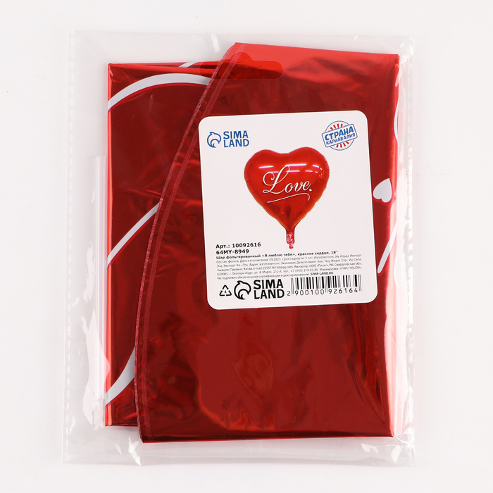 Шар воздушный фольгированный 18" «Я люблю тебя», красный — Характеристики