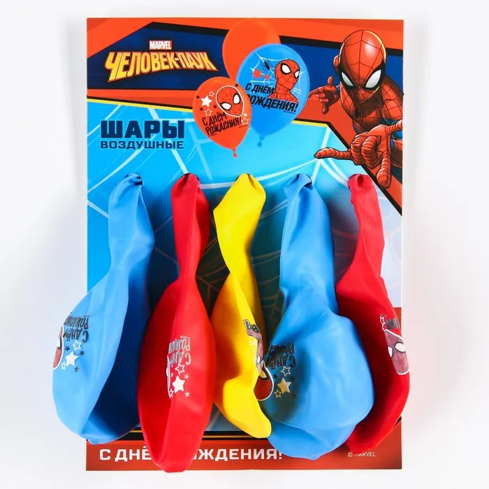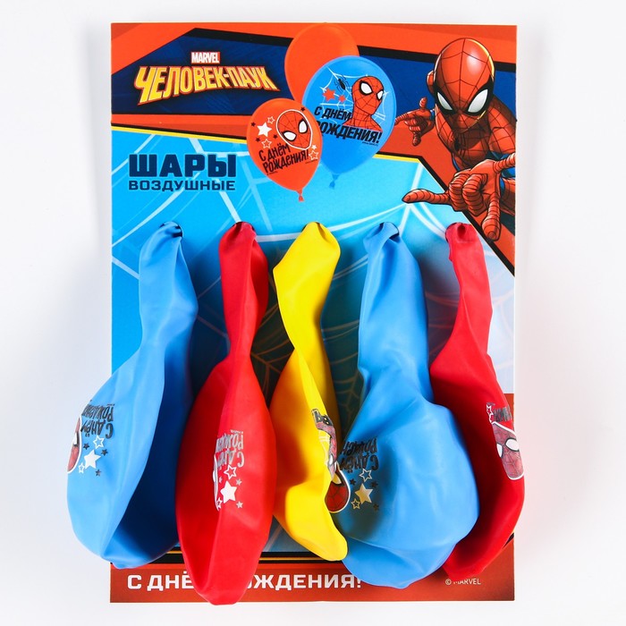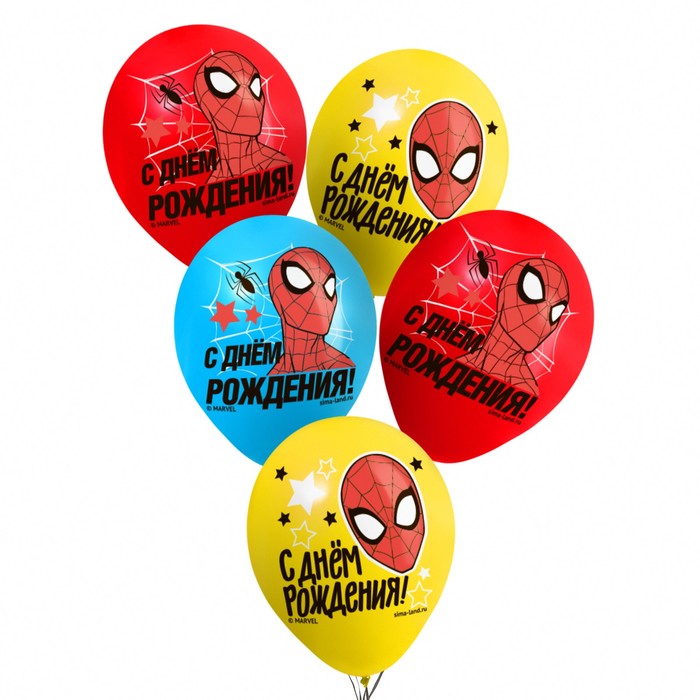 Шар воздушный «С Днем рождения!» 12 дюйм, латексный, 5 штук, Человек-паук — Характеристики