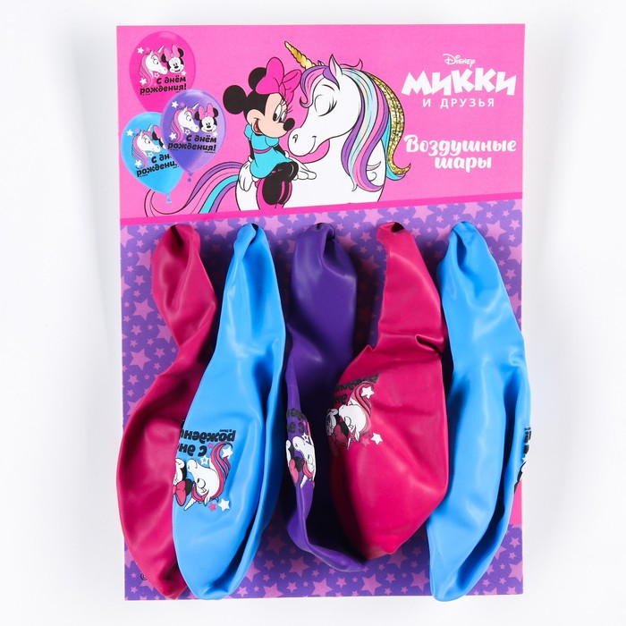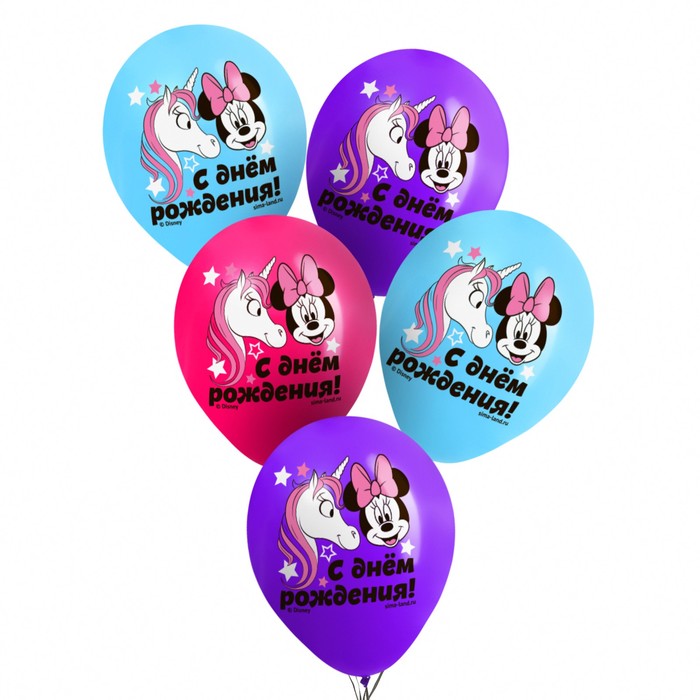 Шар воздушный «С Днем рождения!», 12 дюйм, латексный, 5 штук, Минни Маус и единорог — Характеристики