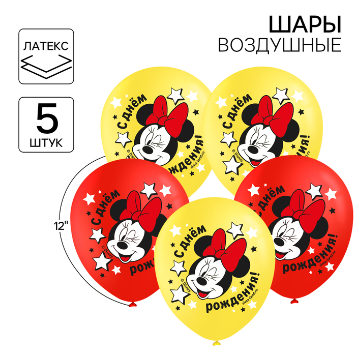 Шар воздушный «С Днем рождения!» 12 дюйм, латексный, 5 штук, Минни Маус — Характеристики