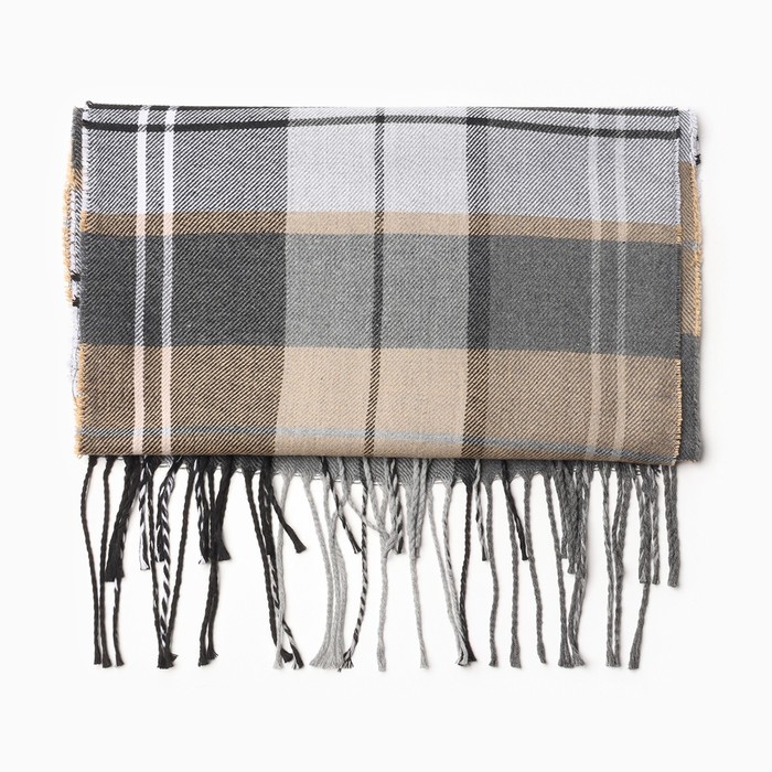 Шарф мужской, цвет бежевый/клетка, размер 31х170