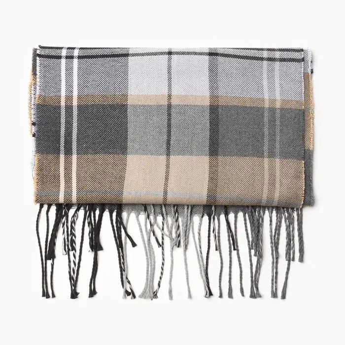 Шарф мужской, цвет бежевый/клетка, размер 31х170 — Характеристики