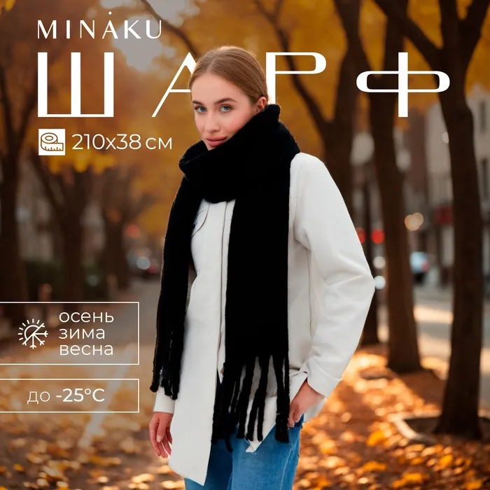 Шарф зимний объемный с кистями MINAKU 210*38+18 см цвет чёрный — Характеристики