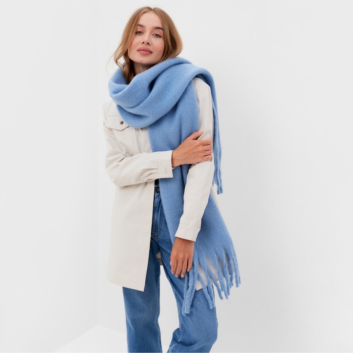 Шарф зимний объемный с кистями MINAKU 210×38+18 см цвет голубой — Характеристики