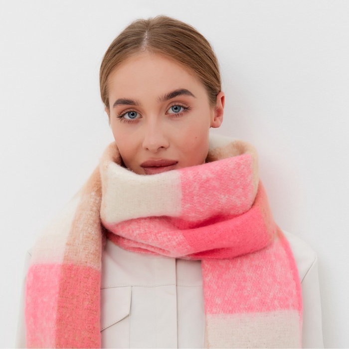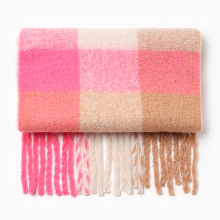 Шарф зимний объемный с кистями MINAKU клетка 210*38+18 см — Характеристики