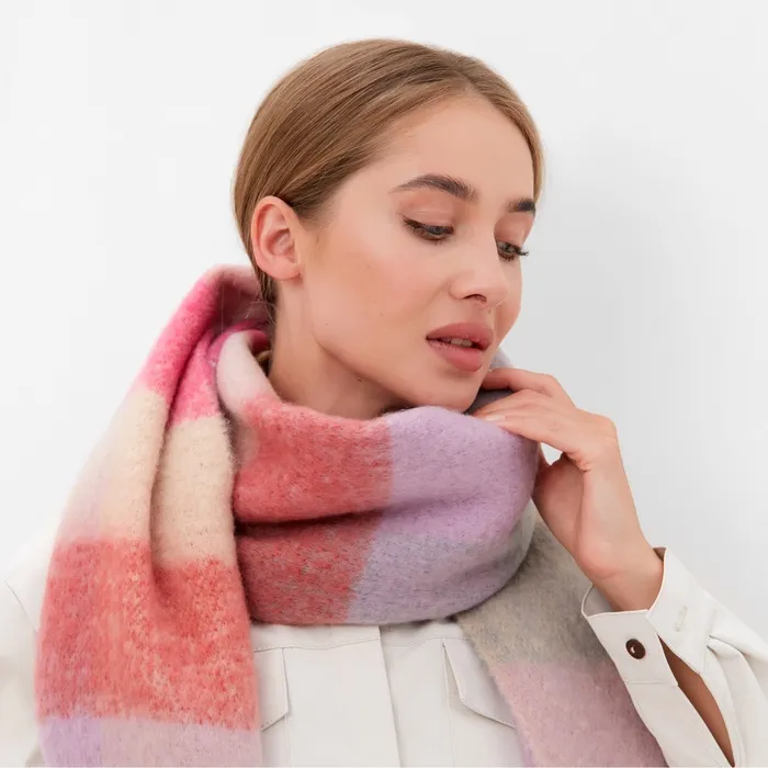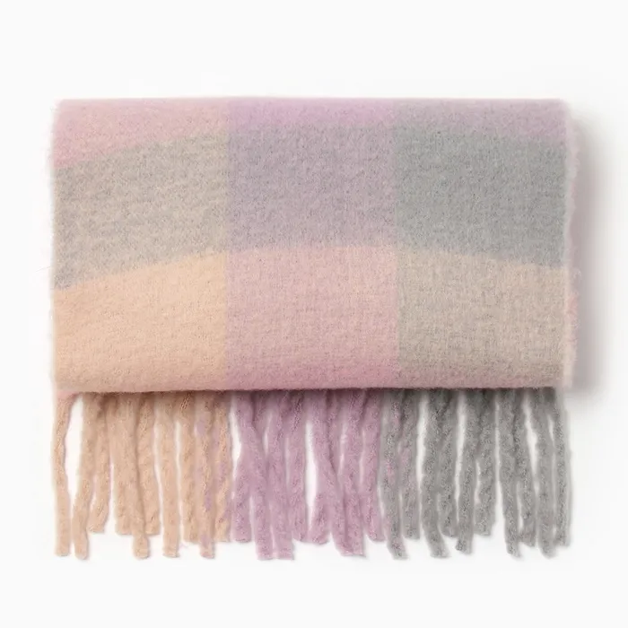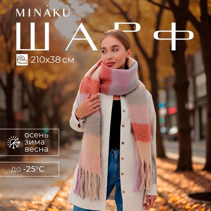 Шарф зимний объемный с кистями MINAKU, размер 210×38+18 см, принт клетка — Характеристики