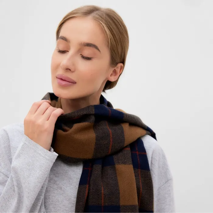 Шарф зимний с кистями MINAKU, размер 65×180 + 3 см, принт клетка — Характеристики