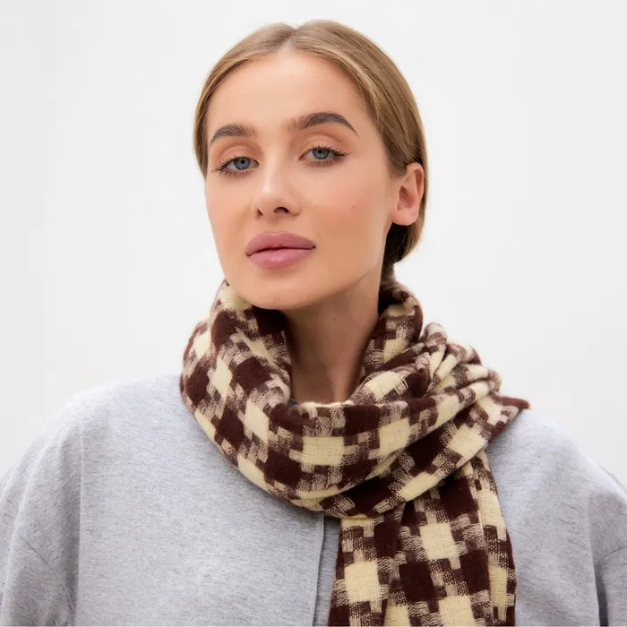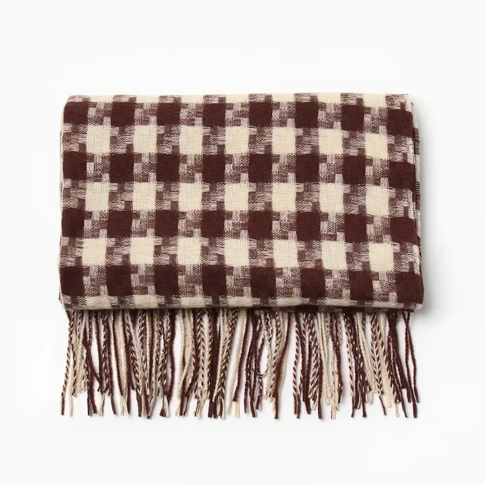 Шарф зимний с кистями MINAKU, размер 65×180 + 8 см, принт клетка — Характеристики