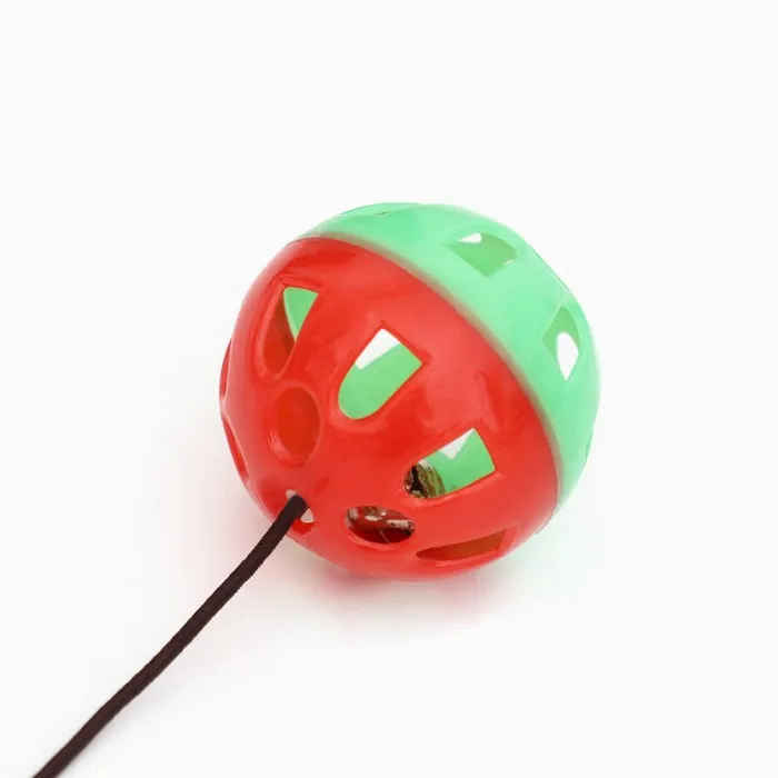 Представлена на верёвочке с присоской. Вы сможете прикрепить игрушку в любое место, а шарик будет "болтаться" на верёвке и манить питомца к игре, он сможет с ней поиграть самостоятельно, когда вас нет дома. В шарике находится звонкий бубенчик, что будет провоцировать кошачий инстинкт.