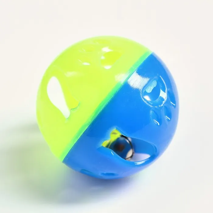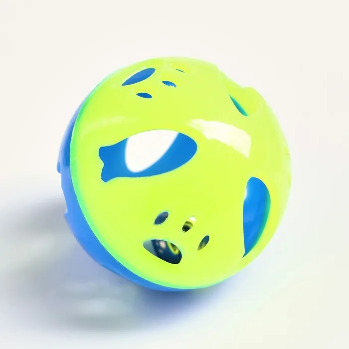 Шарик для кошек с бубенчиком "Рыбки и лапки", 3,8 см, жёлтый/синий — Характеристики