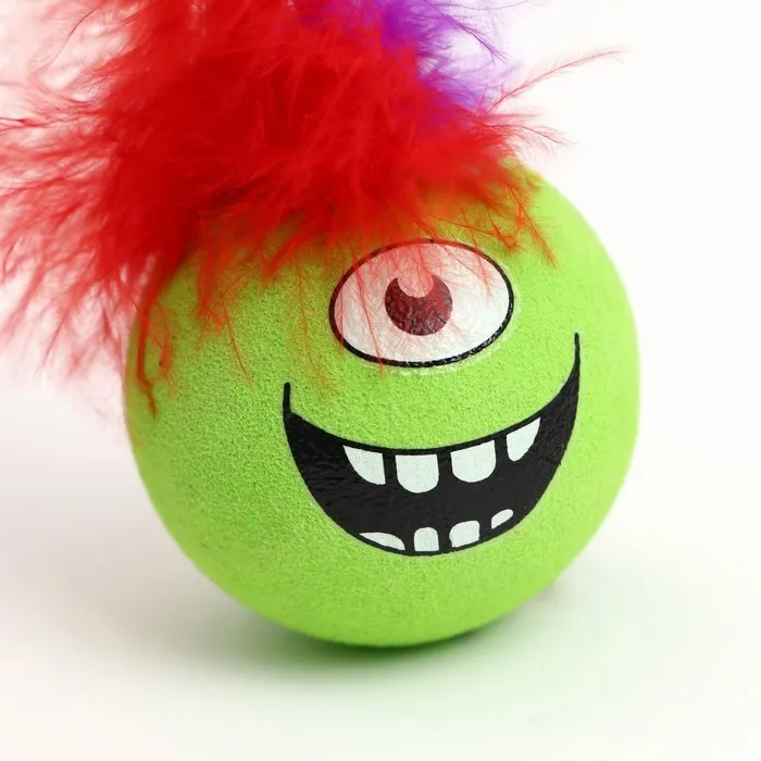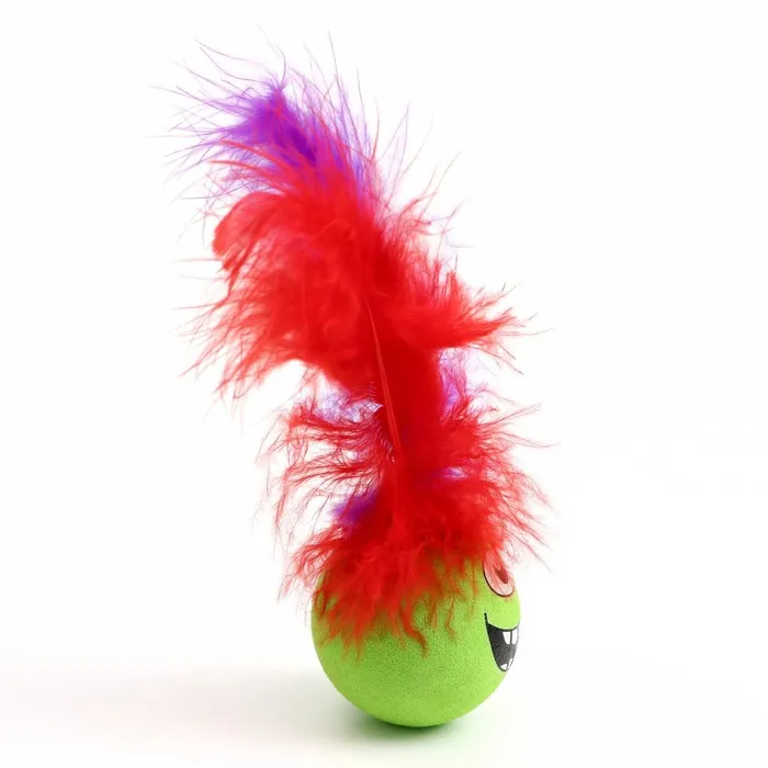 Шарик для кошек с перьями "Эмоции", 5 см, зелёный — Характеристики