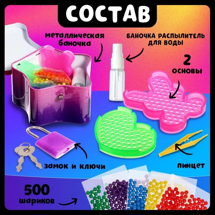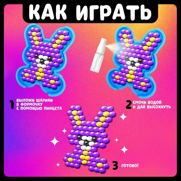С шариками для аквамозаики от торговой марки «Эврики» ребёнок соберёт объёмные фигурки из цветных бусинок. Под воздействием жидкости детали плотно скрепляются друг с другом и превращаются в объёмную фигурку, с которой можно играть.
