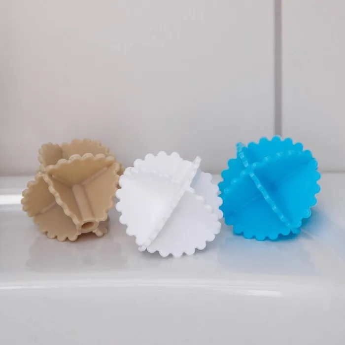 Специальная конструкция шарика уменьшает расход стирального порошка, обеспечивает тщательную стирку и полоскание. С шариками в барабане вещи быстрей «сушатся» и меньше сминаются. Благодаря специальной поверхности ваше бельё будет мягким. Химические средства для смягчения белья не потребуются!
