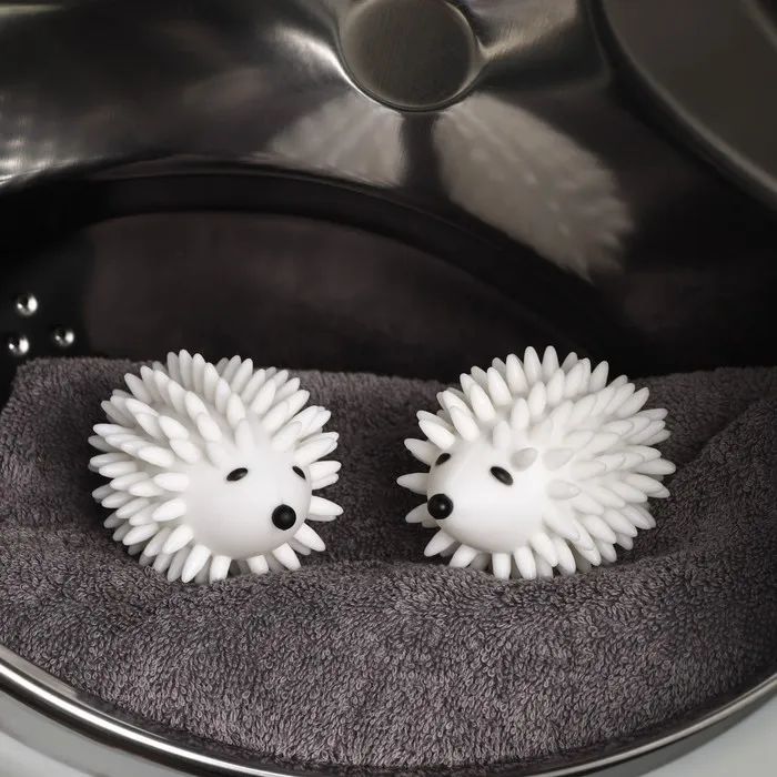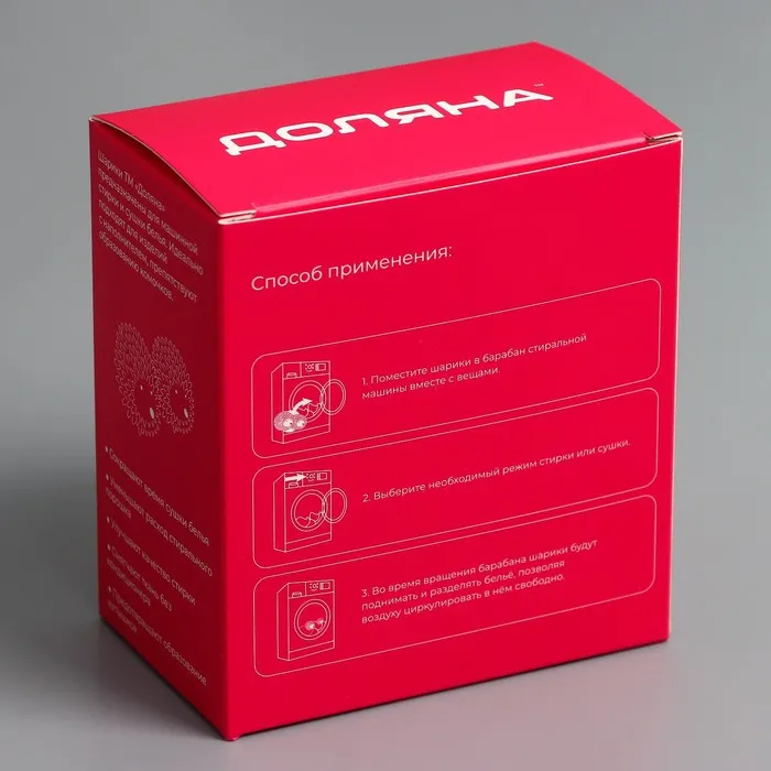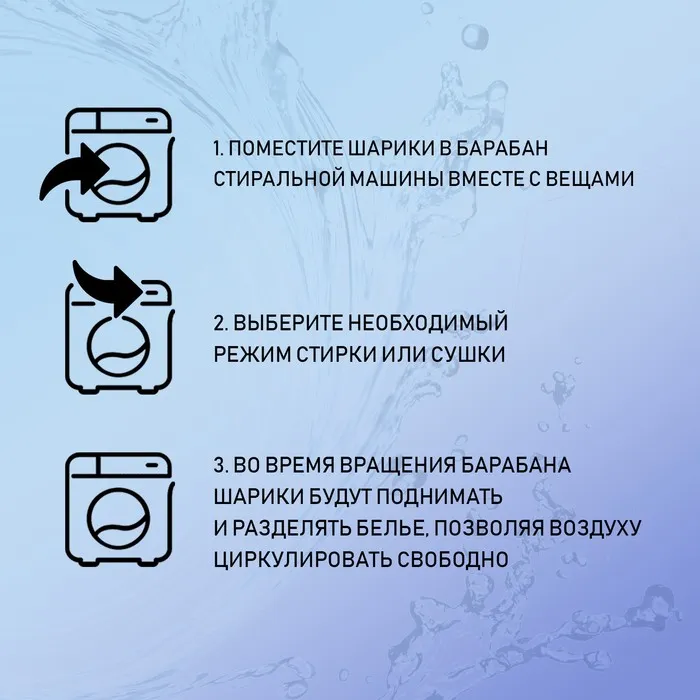 Специальная конструкция шарика уменьшает расход стирального порошка, обеспечивает тщательную стирку и полоскание. С шариками в барабане вещи быстрей «сушатся» и меньше сминаются. Благодаря специальной поверхности ваше бельё будет мягким. Химические средства для смягчения белья не потребуются!