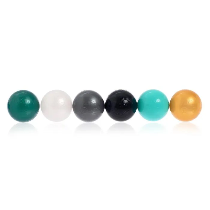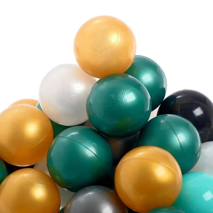 Шарики для сухого бассейна для сухого бассейна 150 штук (бирюзовый, серебро, зеленый металлик, золотой, белый перламутр, черный), диаметр шара 7,5 см