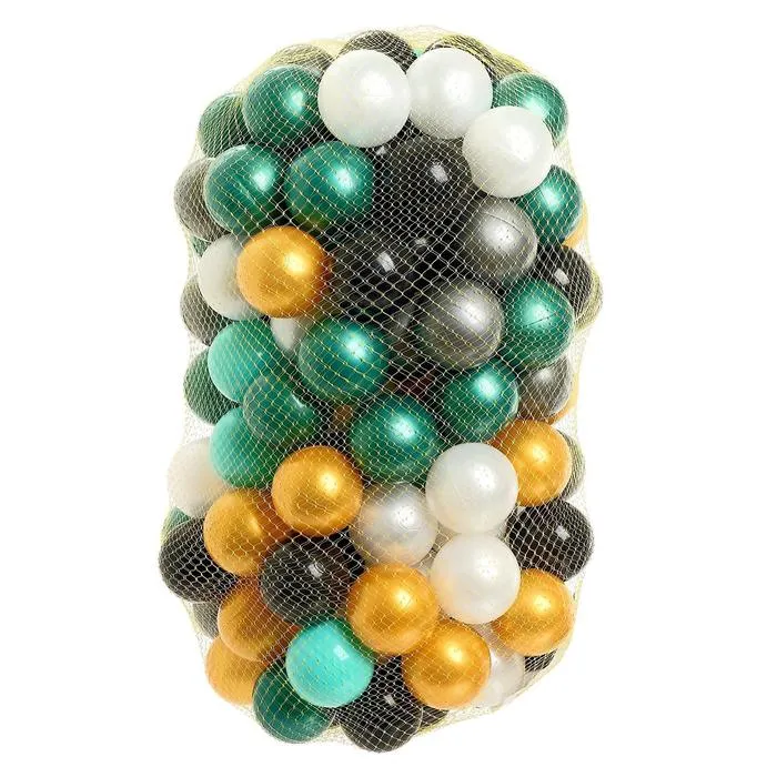 Шарики для сухого бассейна для сухого бассейна 150 штук (бирюзовый, серебро, зеленый металлик, золотой, белый перламутр, черный), диаметр шара 7,5 см — Характеристики