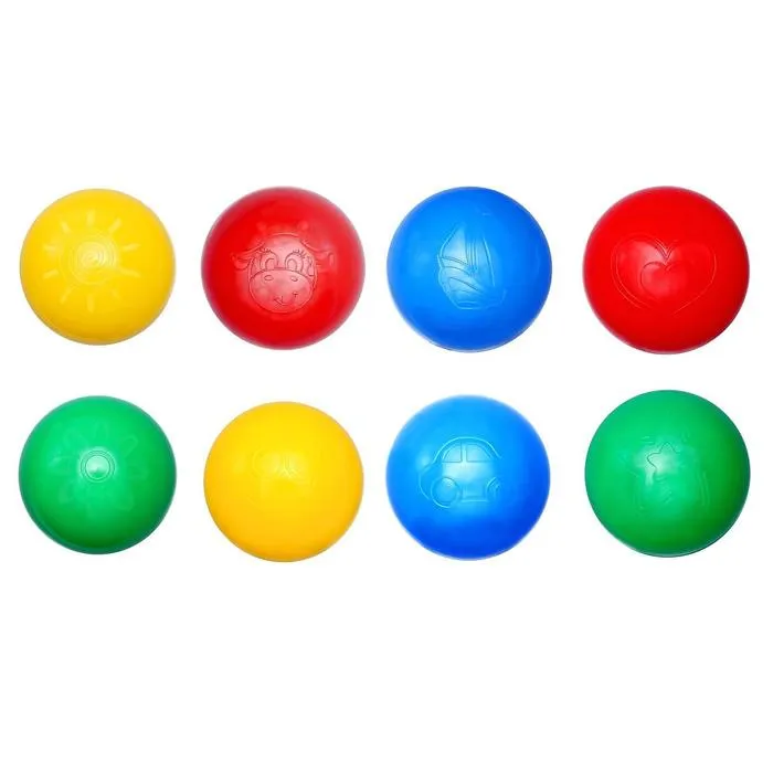 Яркие разноцветные шарики для сухого бассейна добавят в детские игры больше позитива, веселья и азарта! На каждом элементе прорисована картинка: машинка, жирафик, солнышко, цветочек, сердечко, кораблик, улыбка или звёздочка. Шарики выполнены в сочных глянцевых красках, они отлично развивают у малышей восприятие цвета.