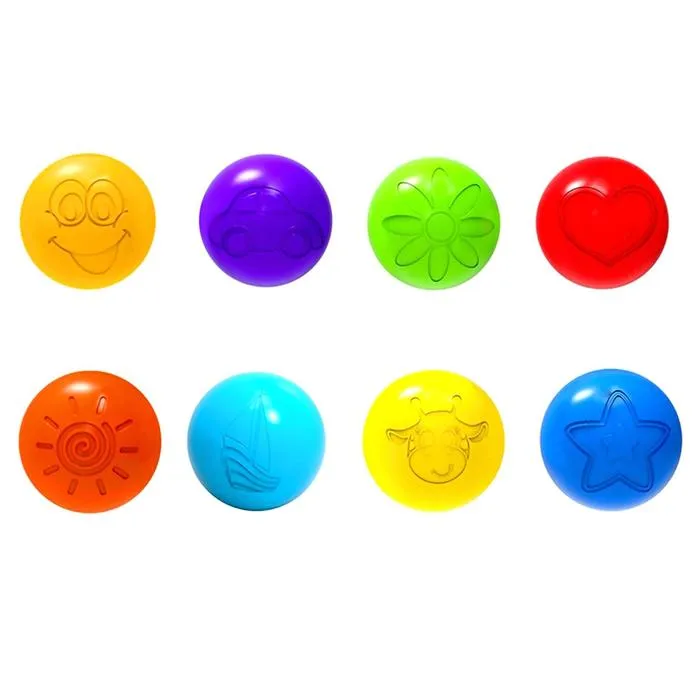Яркие разноцветные шарики для сухого бассейна добавят в детские игры больше позитива, веселья и азарта! На каждом элементе прорисована картинка: машинка, жирафик, солнышко, цветочек, сердечко, кораблик, улыбка или звёздочка. Шарики выполнены в сочных глянцевых красках, они отлично развивают у малышей восприятие цвета.