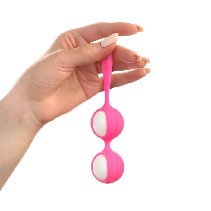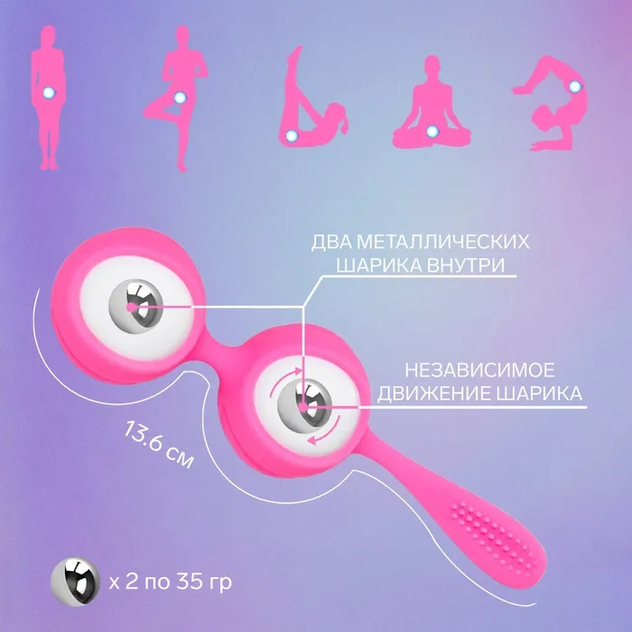 Вагинальные шарики на сцепке выполнены из медицинского силикона , сам шарик из гипоаллергенного ABS-пластика. Такие оптимальны как для начинающих, так и для продвинутых пользователей. Занятия с вагинальными шариками укрепляют мышцы тазового дна , это позволяет усилить ощущения во время секса. Вагинальные шарики помогают восстановить мышцы после родов.
