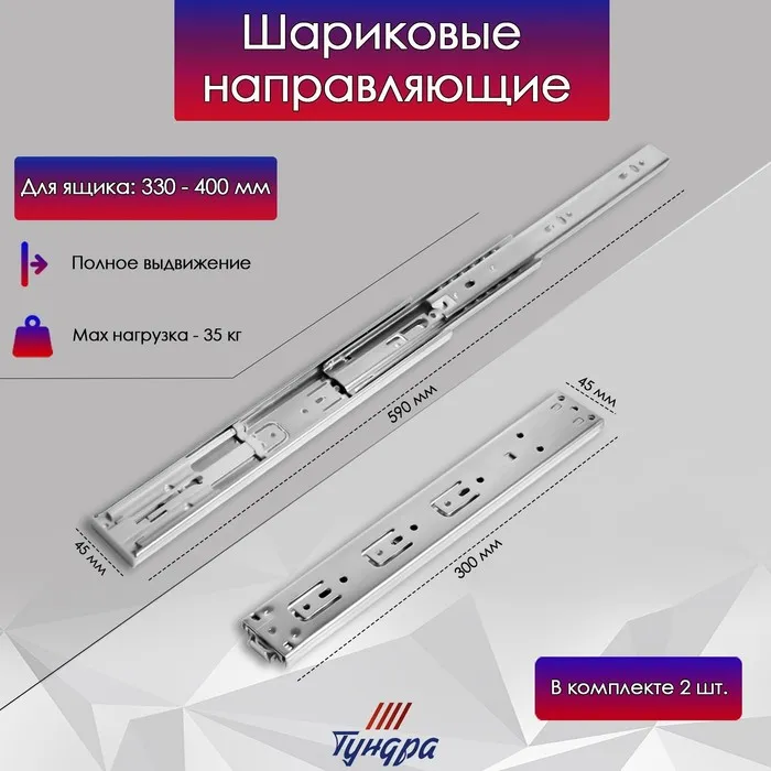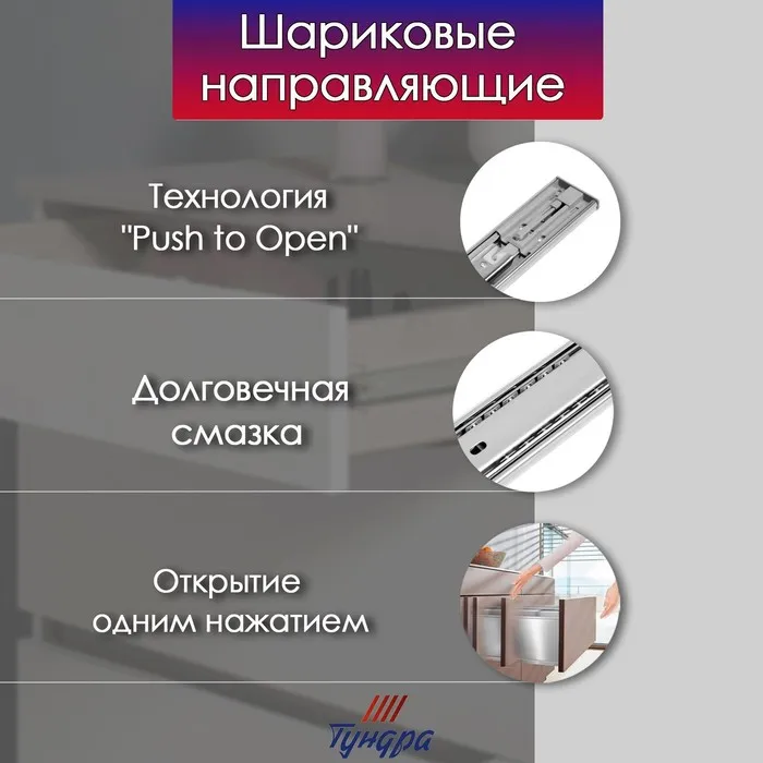 Шариковые направляющие ТУНДРА, система Push to Open 4512, L=300 мм, H=45 мм, 2 шт. — Характеристики