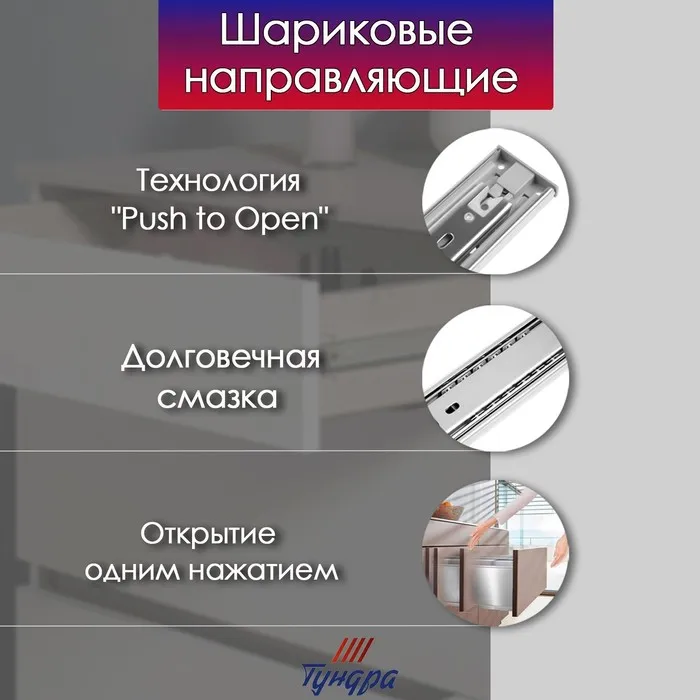 Шариковые направляющие ТУНДРА, система Push to Open 4512, L=350 мм, H=45 мм, 2 шт. — Характеристики