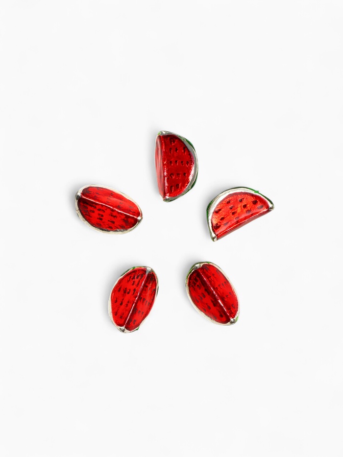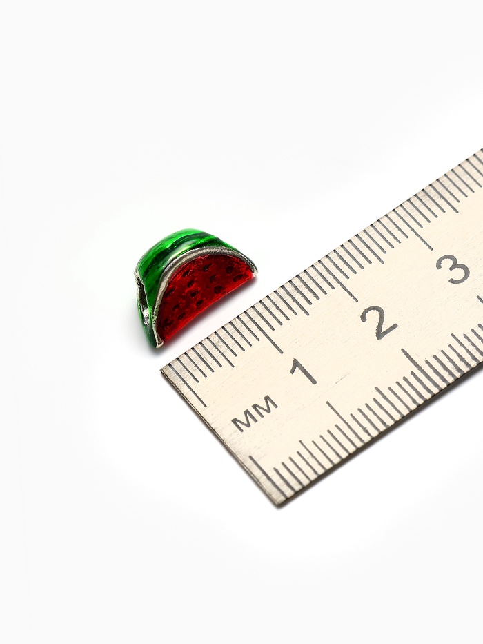 Шарм «Арбузик сочный», зелёно-красный в серебре — Характеристики