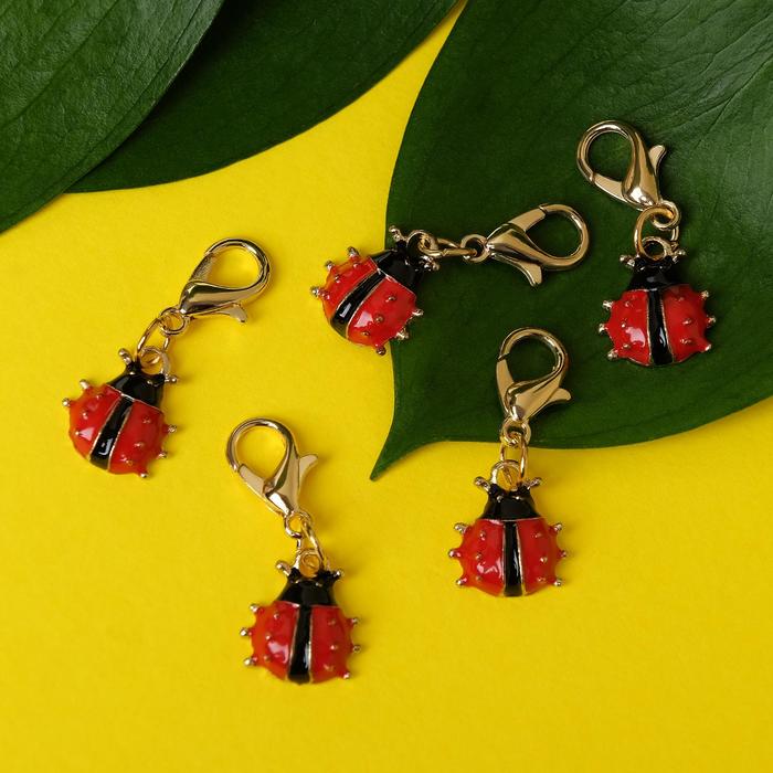 Шарм для браслета на карабине «Божья коровка», красно-чёрный в золоте — Характеристики