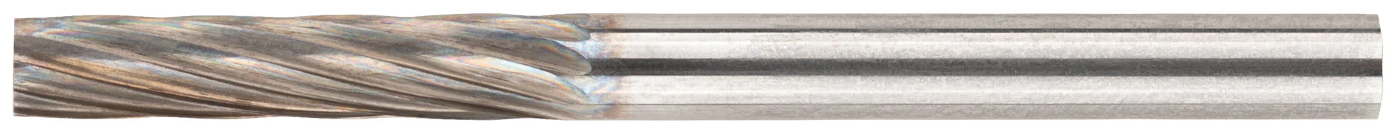 Шарошка изготовлена из инструментальной стали с рабочей поверхностью из карбид-вольфрамового сплава. Миниатюрный штифт диаметром 3 мм обеспечивает высокую маневренность и точность при работе. Длина режущей части составляет 16 мм, что позволяет эффективно обрабатывать различные поверхности.