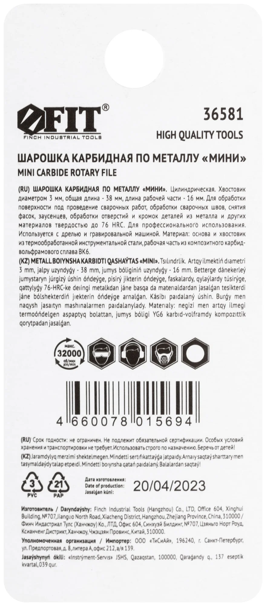 Шарошка карбидная FIT идеально подходит для обработки металлических и неметаллических материалов с прочностью до HRC70. Используйте её с дрелью или гравировальной машинкой для создания точных и аккуратных поверхностей.
