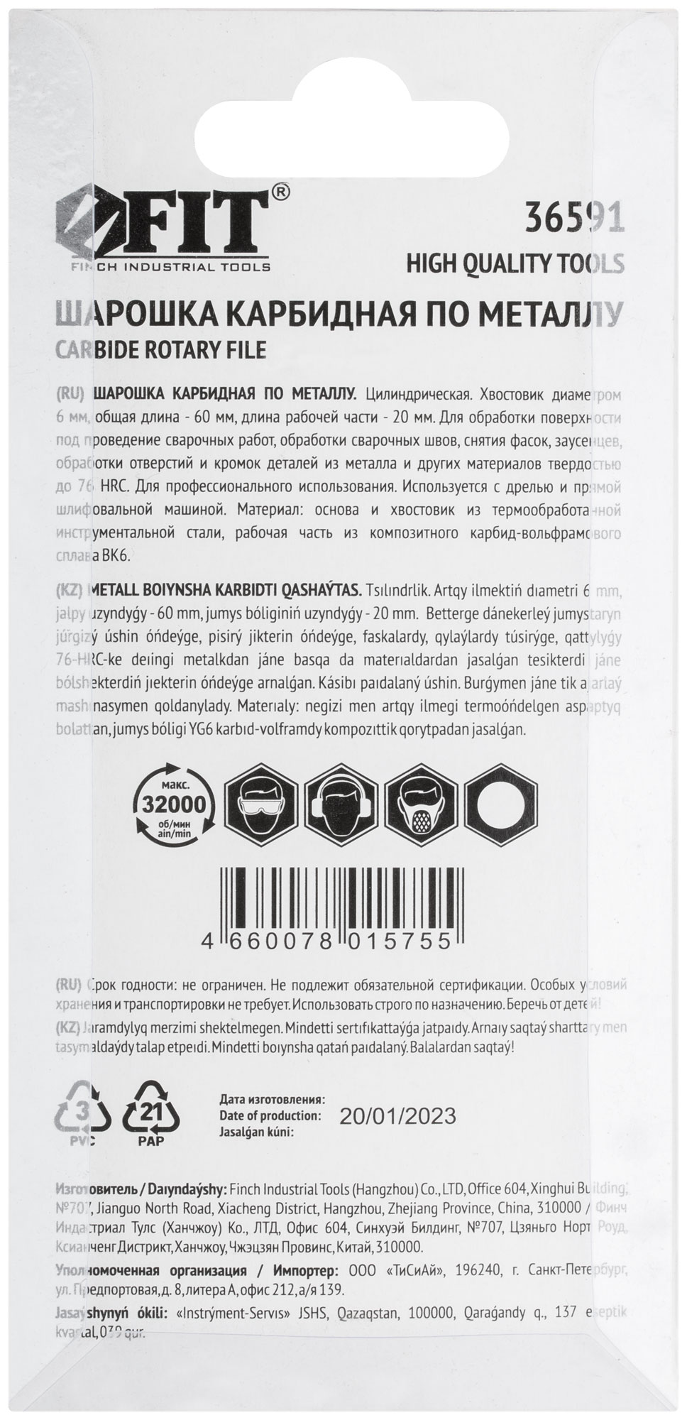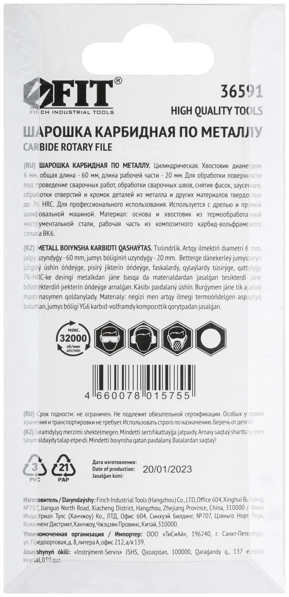 Выберите карбидную шарошку FIT 36591, чтобы сделать вашу работу по металлообработке более точной и эффективной.