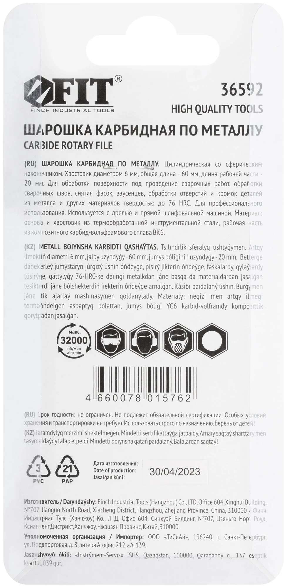 Выберите карбидную шарошку FIT 36592 для достижения точных и профессиональных результатов при обработке материалов.