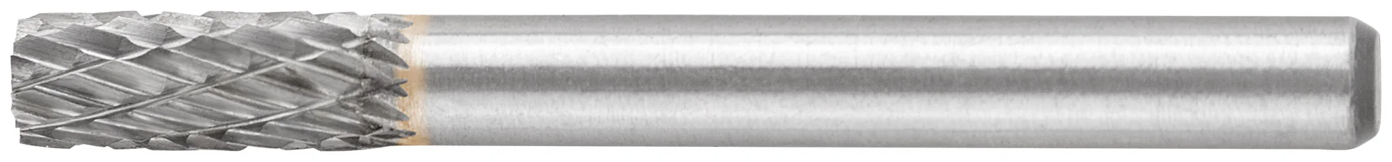 Изготовленная из легированной инструментальной стали и карбида вольфрама ВК8, эта шарошка отличается высокой износостойкостью и долговечностью. Цилиндрическая форма рабочей части и оптимальные размеры (D - 6 мм; H - 16 мм; L - 61 мм) обеспечивают удобство в работе.