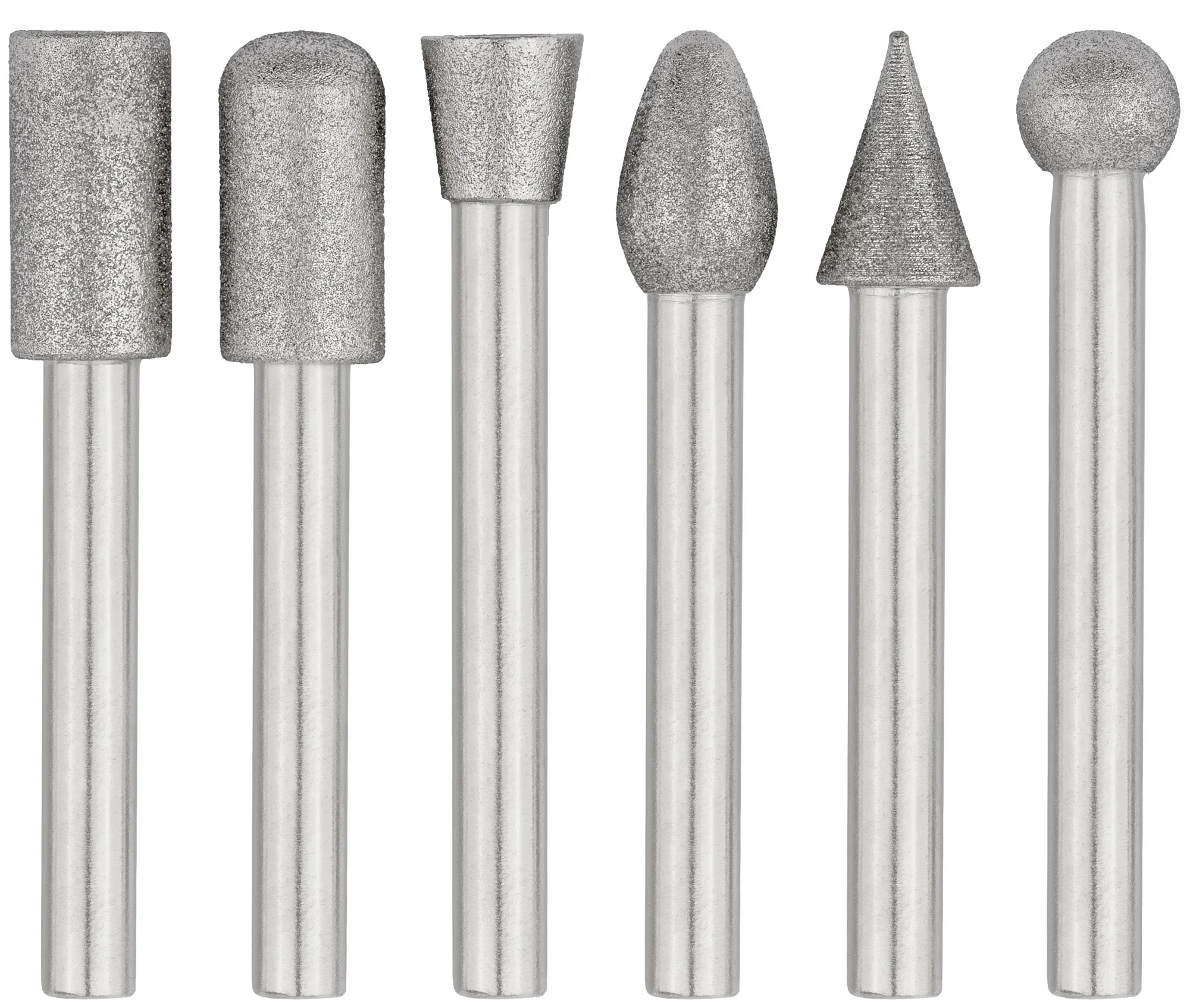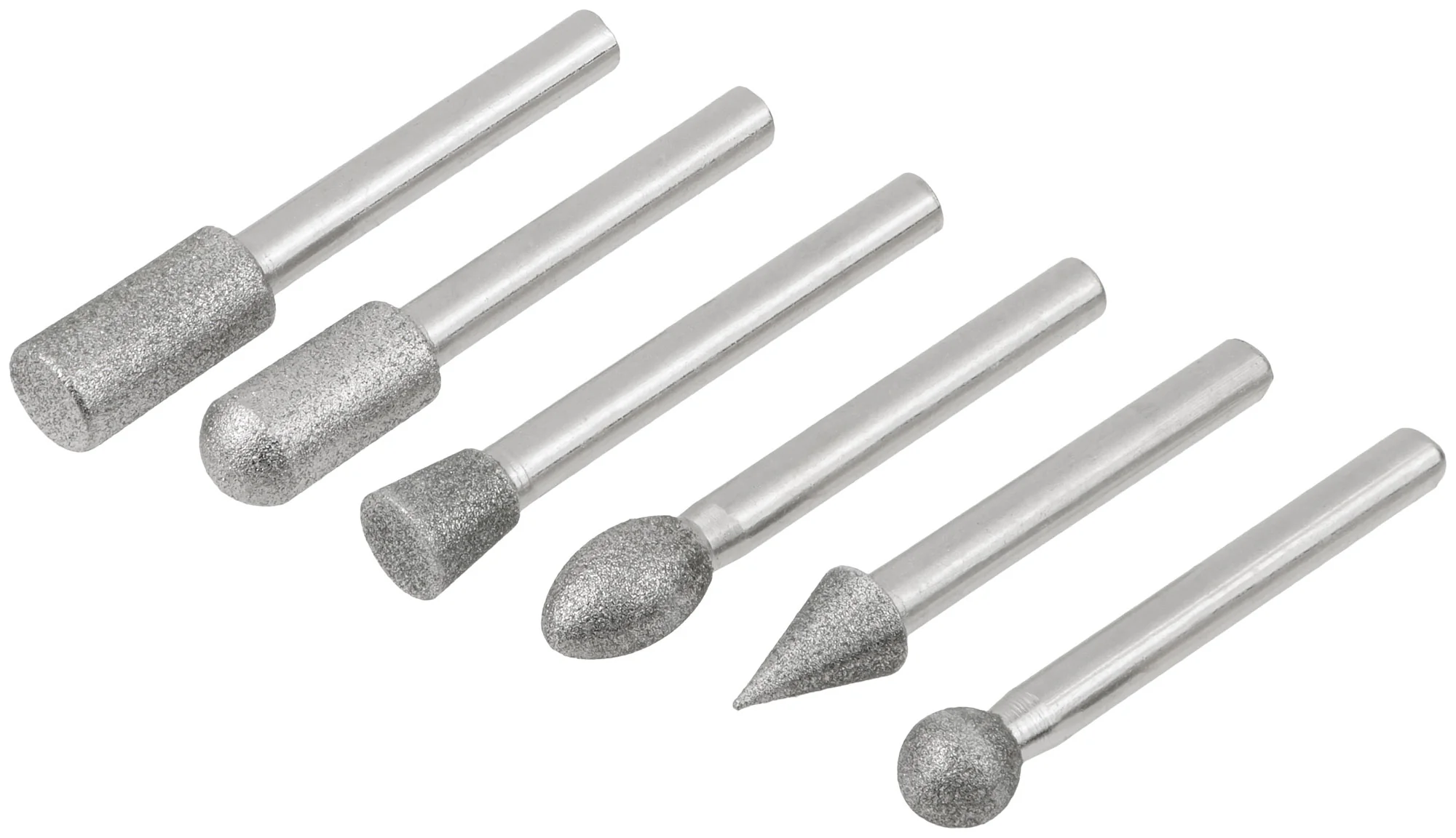 Шарошки из усиленной стали с алмазным напылением, штифт 6 мм, 6 шт.