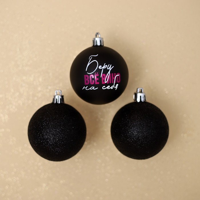 Шары ёлочные новогодние «Беру все вино на себя», пластик, d=6, 3 шт., чёрные — Характеристики